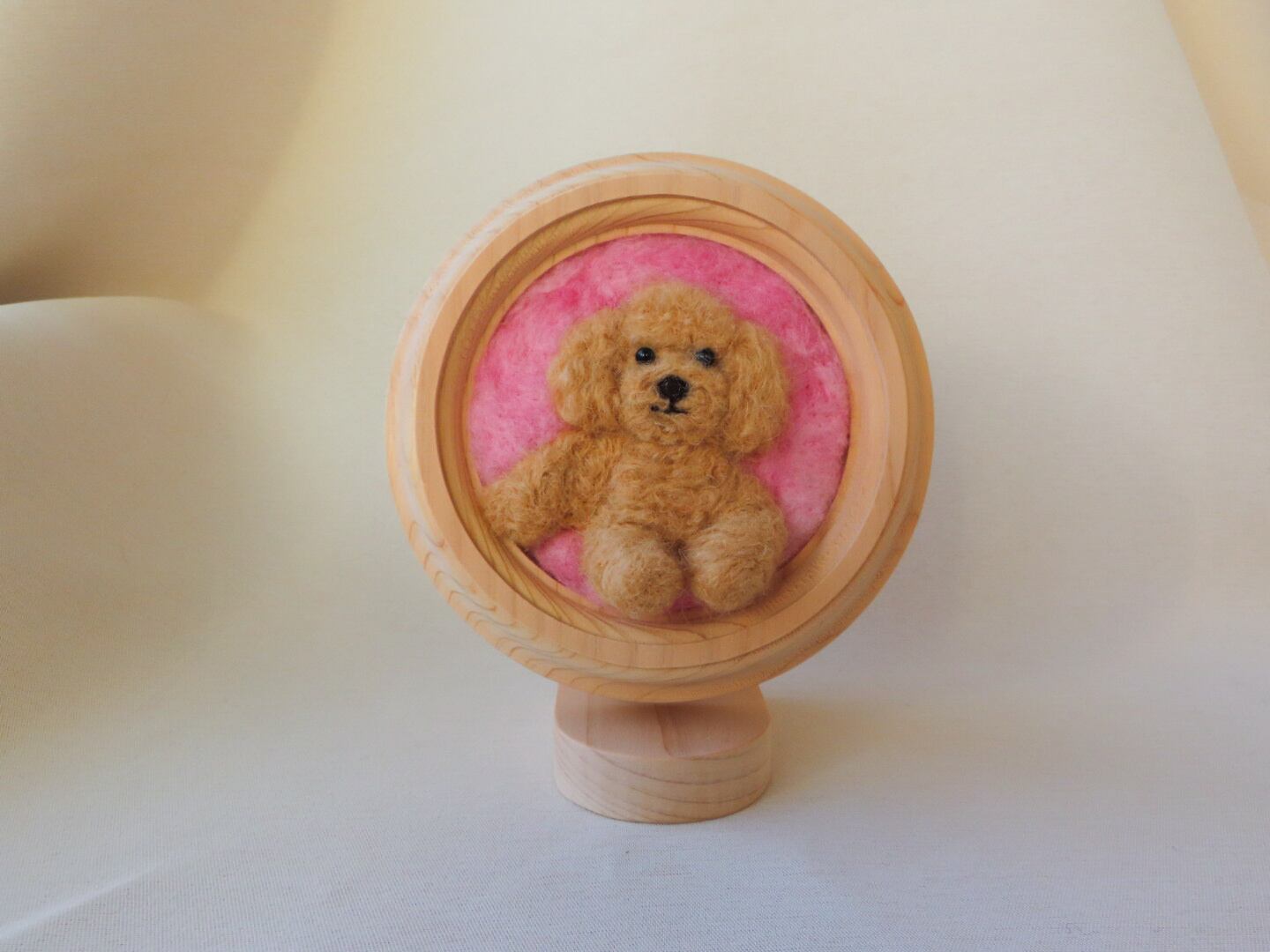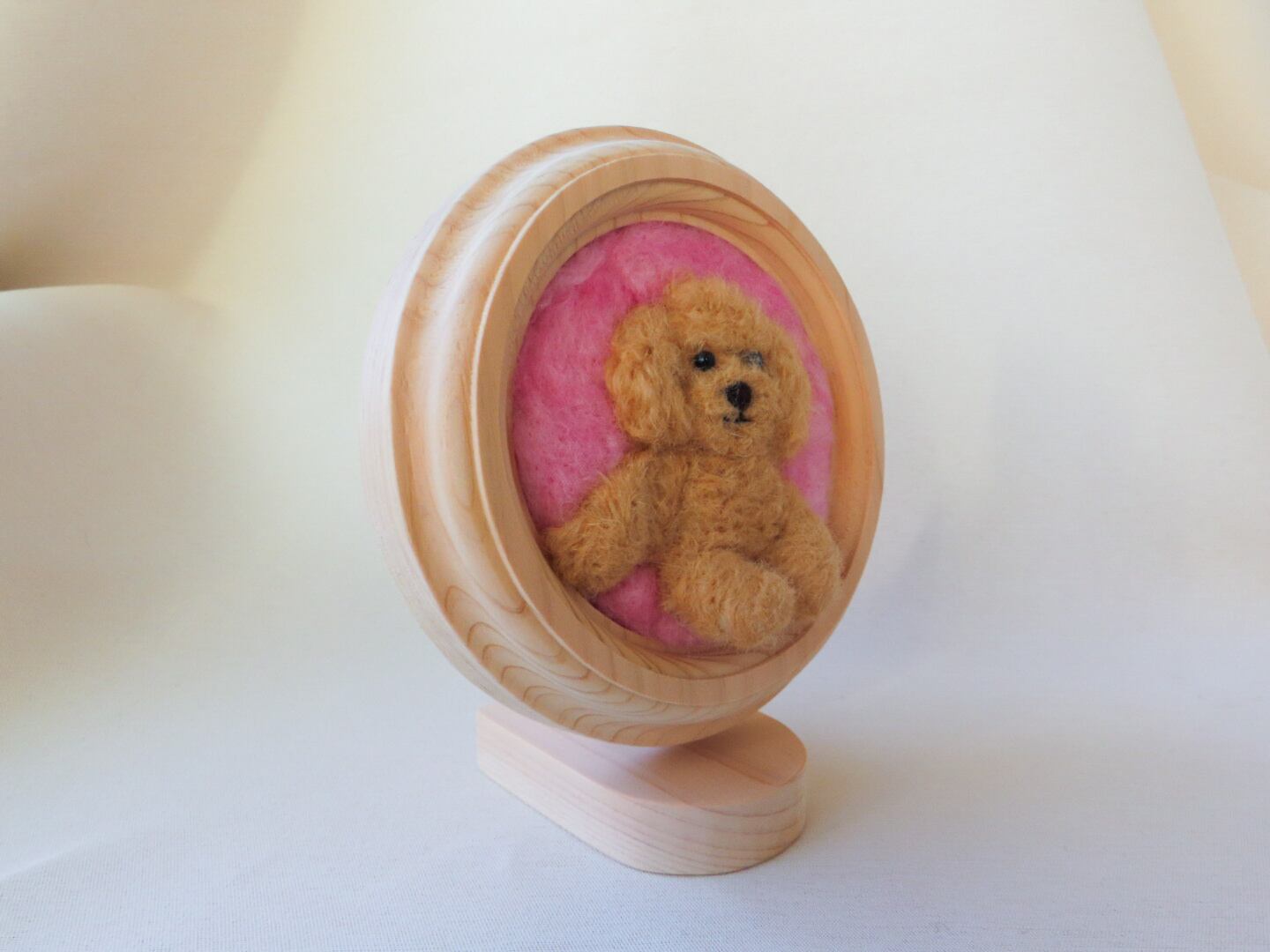 手作りのフレームに、羊毛でトイプードルを描きました。小さなスペースにも飾っていただけます。